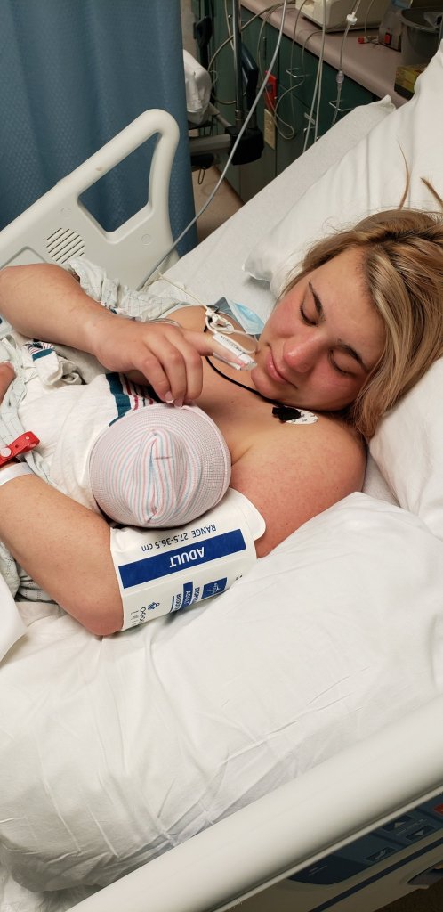 They were finally done stitching me back up, and I was headed to the recovery room. Brandon came a little bit later. Even though you aren’t physically trying to push a baby out, going through something like that makes you exhausted. I was beyond exhausted. I was excited that he was finally here, but I was exhausted. But another thing that was different with this delivery than with our daughter, was we could have him in our room with us! It was great! It was different, but a good different! We could see him! We could hold him! Even though I couldn’t move super easily that first day, I could hold my son in our room. We didn’t have to go to another room to hold our child. We even had one of the same nurses that we had when we had our daughter! So it was great to see her again!